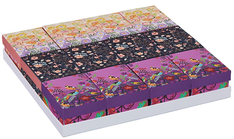 "Floral 5" Rektangulære gaveesker (12) assorterte