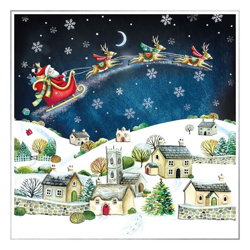 "Santa over the Rooftops" Luxury Christmas Sq Notecards 6/6