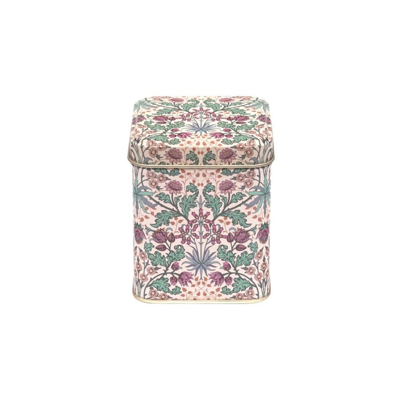 "Arts & Crafts - Hyacinth" Te-boks 100 gram. Kvadratisk metallboks fra Elite Tins, England, design av William Morris .