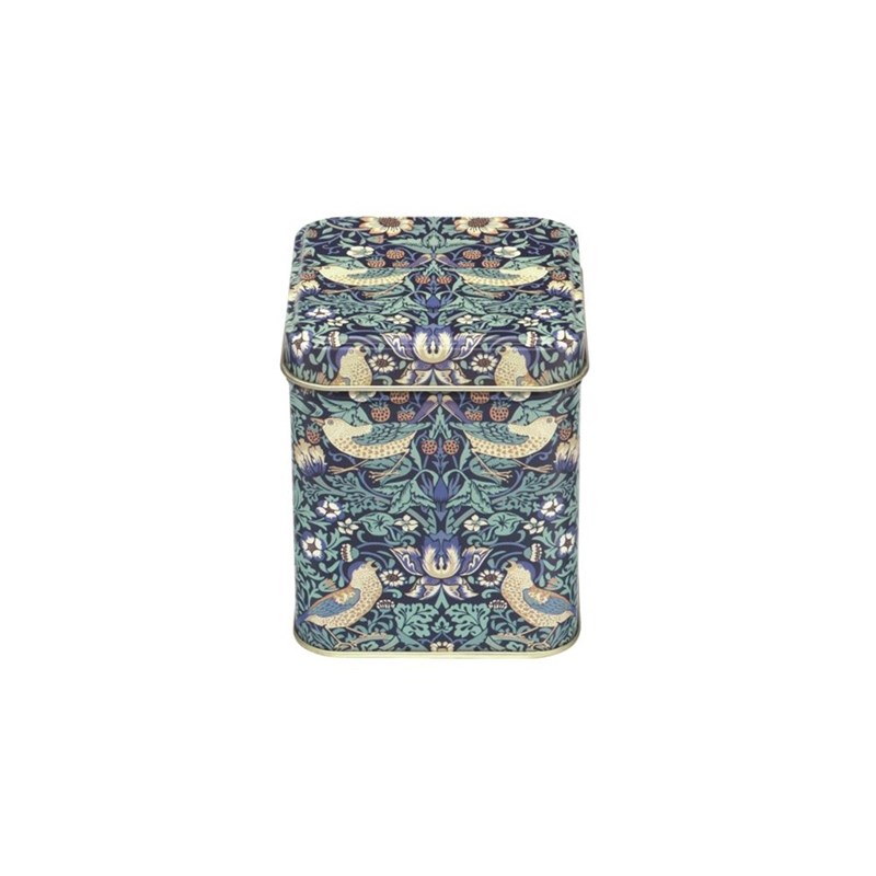 "Arts & Crafts - Strawberry Thief" Te-boks 100 gram. Kvadratisk metallboks fra Elite Tins, England,