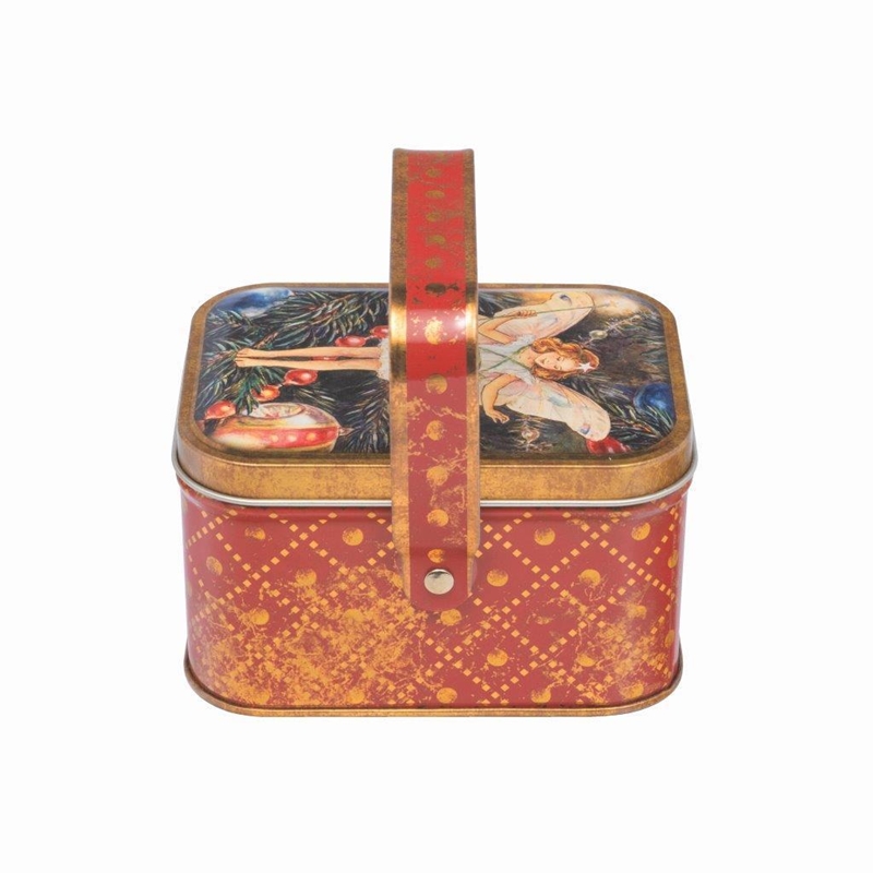 "Flower Fairies" metallboks med hank med et nostalgisk julemotiv.