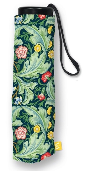 Kompakt og lett paraply i "Leicester Wallpaper" design, produsert av Museums & Galleries, England. Designet er laget av J.H. Dearle (1859-1932), England, 1912. Kommer med matchende trekk med glidelås