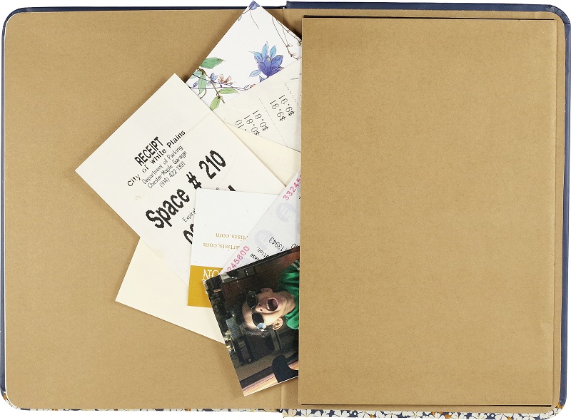 Innbundet linjert journal (skrivebok) fra Peter Pauper Press,USA med preget innbinding og gullfolierte detaljer, strikk-lukking og innvendig lomme.