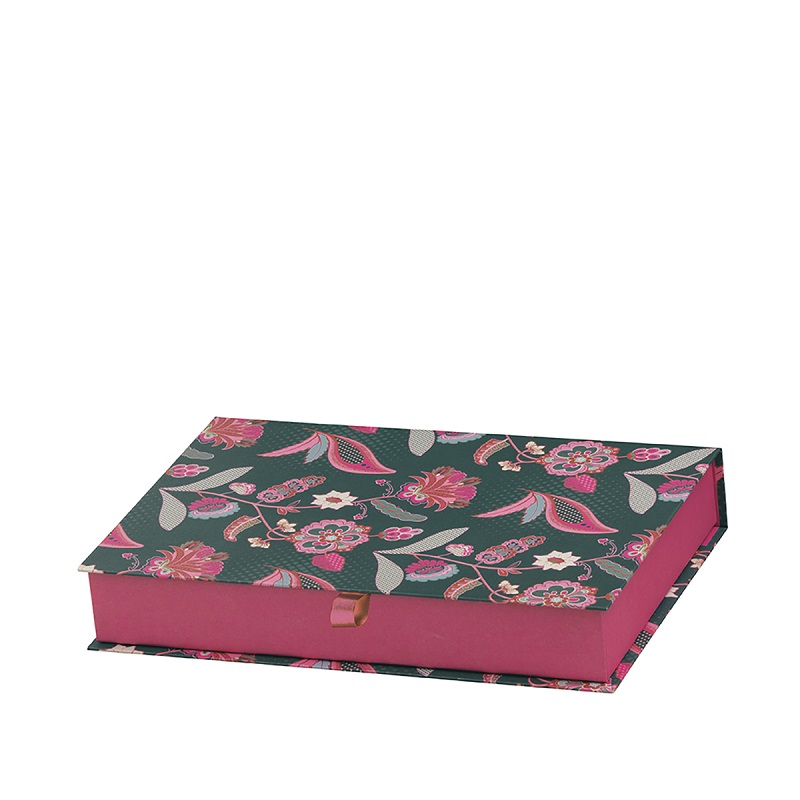 Rektangulær gaveeske/oppbevaringseske i Francesca-design og sort innside i fantastisk utførelse. Passer fint til A4 papirer, skrivepapir og annet. Esken er håndlaget av Røssler i Europa og den er laget av FSC kartong fra godkjente leverandører (FSC C104359).