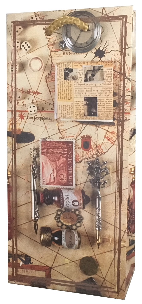 Flaskepose i tøft design med kraftig snor og pakkelapp.