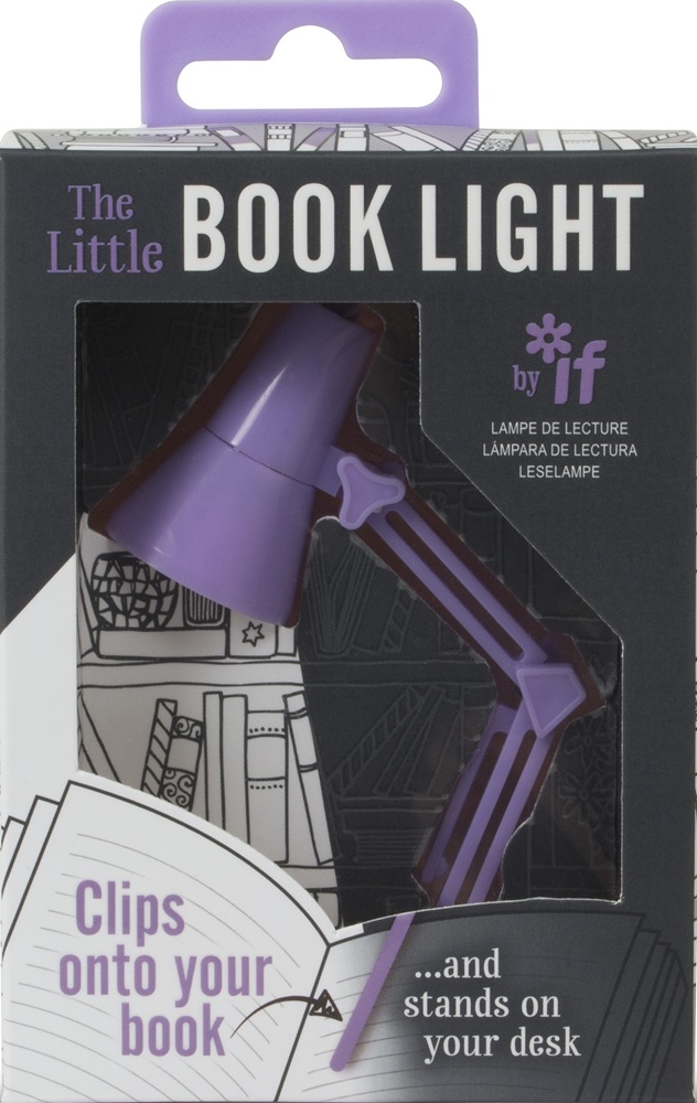 Leselys som enten kan klipses på boken eller settes i holderen så den kan stå på pulten.