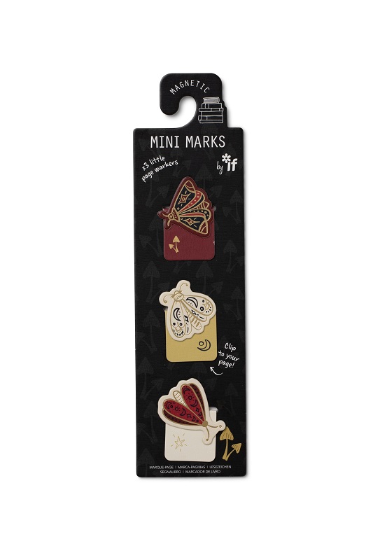 Blister med 3 stk. magnetiske bokmerker med motiv av nattsvermere.