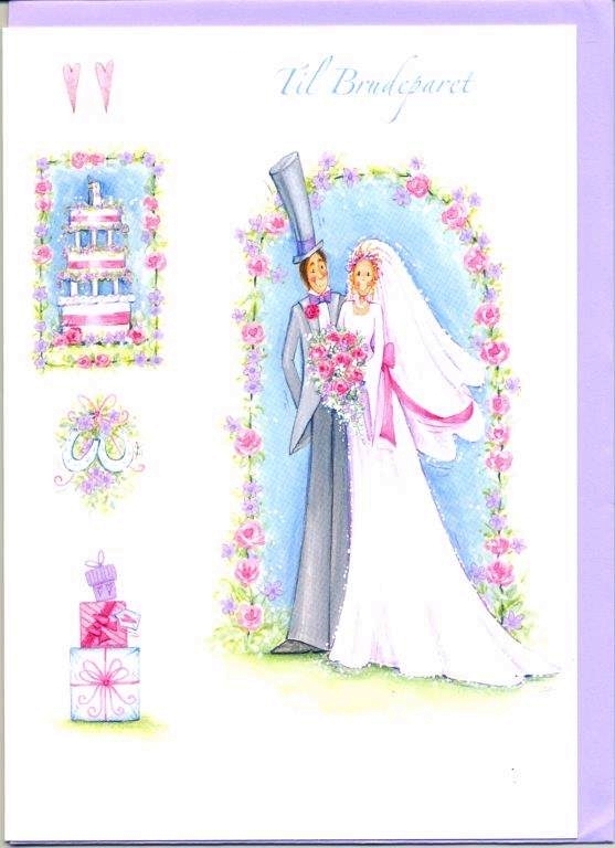 Dobbelt bryllupskort med blank innside og konvolutt.