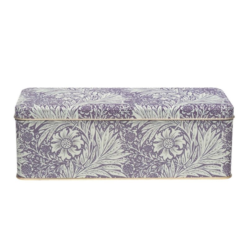 "Arts & Crafts - Marigold" Rektangulær lang metalleske med hengslet lokk fra Elite Tins. Design av William Morris.