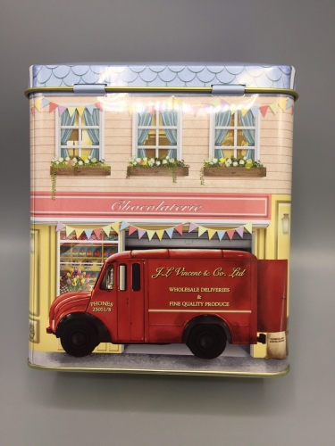 Metallboks med hengslet lokk.