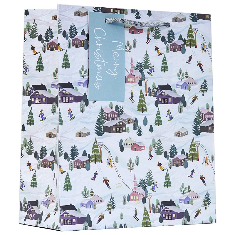 Gavepose medium med vintermotiv designet av Violet, kraftig bæresnor og pakkelapp. Posen er 100 % resirkulerbar.