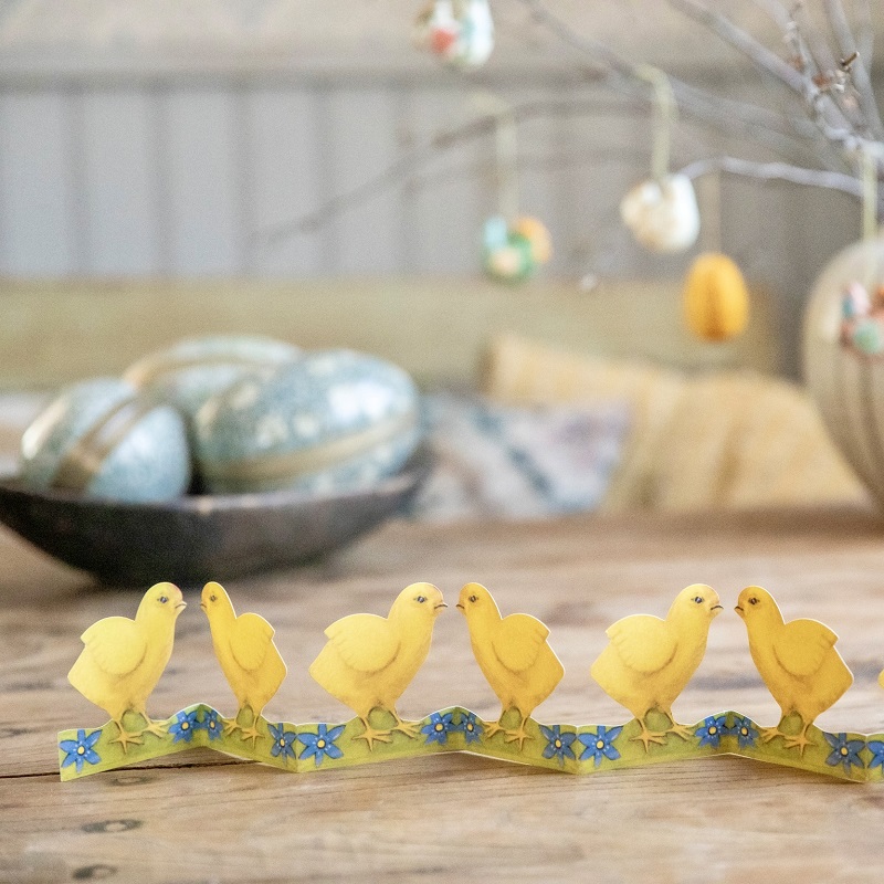 Nostalgisk papirrad med påskemotiv, fin å dekorere med på bordet, peishyllen o.a.