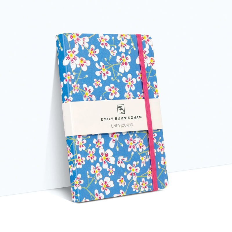Linjert skrivebok med strikklukking og lomme for oppbevaring på innsiden av permen. Produsert på FSC Mix Paper C007972 av Museums & Galleries, England. Motivet "Saxifrage" er designet av Emily Burningham, et London basert design studio.