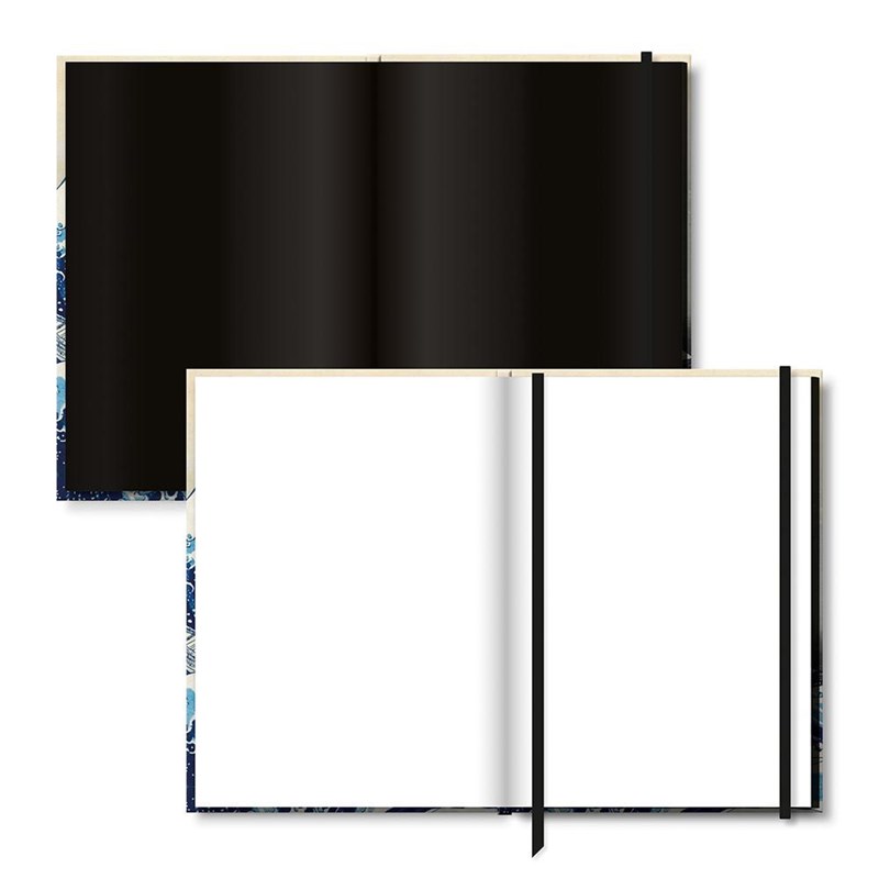 Sketch bok med strikk-lukking, bokmerke-bånd, oppbevaringslomme bak og stive permer. Designet er hentet fra "Under the Wave" av Katsushika Hokusai. Boken er produsert av MIX Paper from responsible sources FSC C157715.