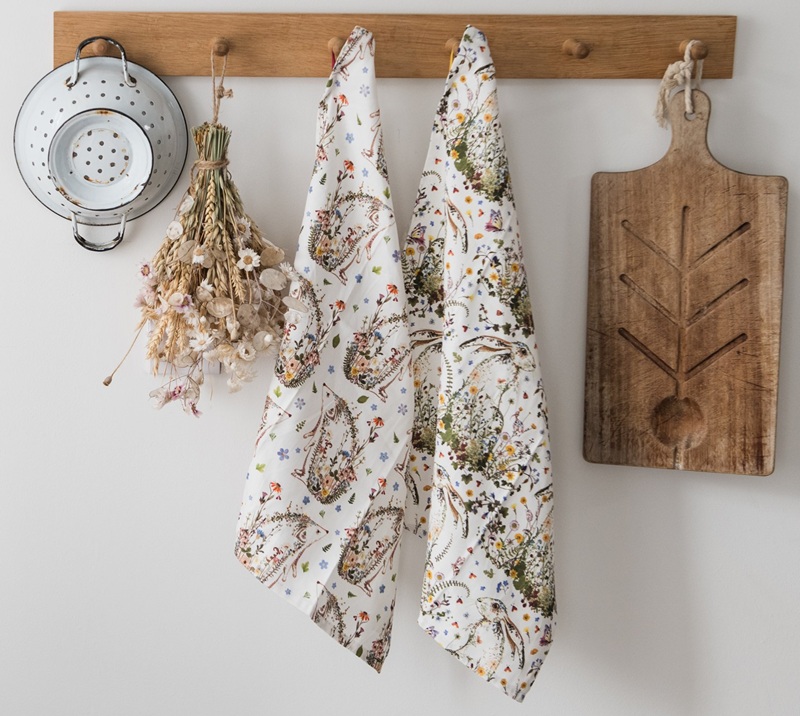 "Wildflower Hare & Hedgehogs" Kjøkkenhåndkle-sett (2 stk)